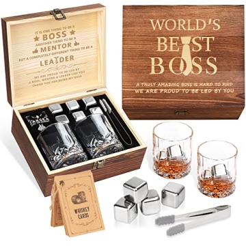 Unique Oaksea Boss Day Gifts - Engraved Whiskey Stones & Glasses Set