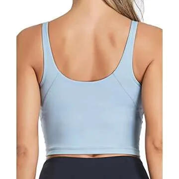 Oalka Sports Bra Womens Longline Padded Crop Tank Yoga Bras Workout Fitness Top Heart Blue S