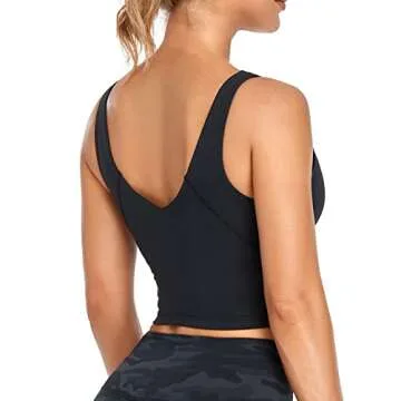 Oalka Sports Bra Womens Longline Padded Crop Tank Yoga Bras Workout Fitness Top Black L