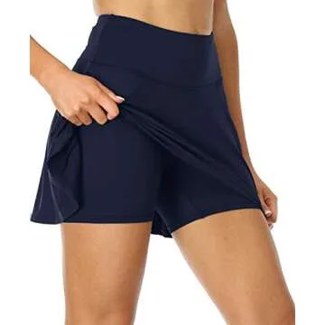Oalka Women's Pleated Skirt with Pockets High Waist Sports Athletic Running Shorts Golf Tennis Skorts Navy Blue Large