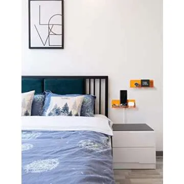 OAPRIRE Small Acrylic Floating Wall Shelves Set of 2, Flexible Use of Wall Space, 9 Inch Adhesive Display Shelf for Security Cameras/Smart Speaker/Action Figures, with Cable Clips - Clear Orange