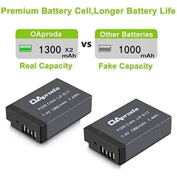 Why You Will Love This Product?The OAproda LP-E17 Battery Charger Pack truly elevates your photography experience. Not only does it provide the power you need to shoot continuously, but it also offers peace of mind knowing that you will never miss a shot due to lack of battery life. With its dual charger, you’ll be prepared for all occasions, whether it’s an impromptu photo session or a planned event. Experience the freedom to explore your creativity without the limitations of battery life by bringing home this essential power pack today!