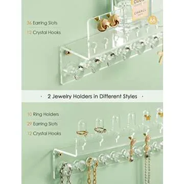 Oaque Acrylic Hanging Jewelry Organizer Wall Mounted Jewelry Holder with Floating Shelf, Necklace Holder Organizer, Stud Earring Organizer and Ring Holder for Women Girls (2 Pack)