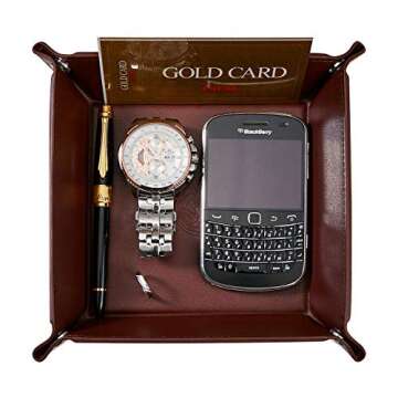 OARIE Leather Valet Tray for Men - Catchall Tray with Key Wallet, Coin Box - Brown