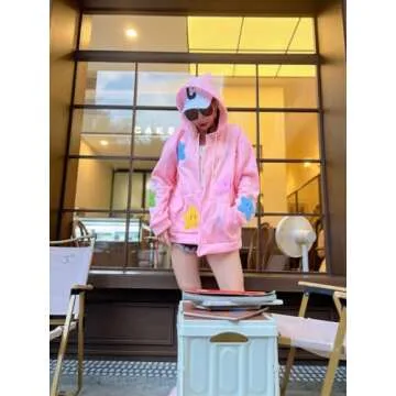 OATSBAS Y2K Cute Zip Up Hoodies for Women Star Patchwork Oversized Hooded Top Teen Girls Aesthetic Sweatshirt (A-Pink,Small,Small)