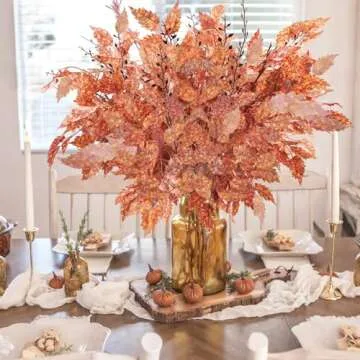 obbsie 3Pcs Artificial Fall Maple Leaves Stems Branches, 21in Autumn Fake Fall Flowers Bushes Faux Fall Plants Greenery for Indoor Outdoor Table Centerpieces Crafts Thanksgiving Fall Decor
