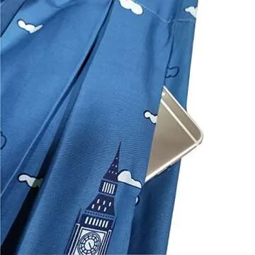OBBUE Dresstore Vintage Pleated Skirt Floral A-line Printed Midi Skirts with Pockets Orange-L