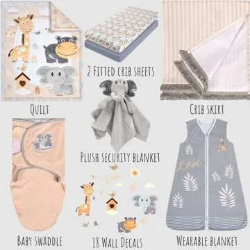 OBERLUX Crib Bedding Set for Boys and Girls, 8 Piece Baby Nursery Bedding Crib Set, Jungle Animal Safari Theme, Gray/Tan/White