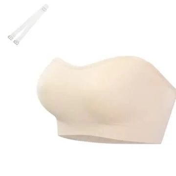 OBICUM Strapless Bras for Women - Comfortable Non-Slip Silicone Bandeau Bra - Seamless Tube in Beige