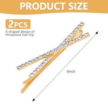 Show moreElevate your hairstyle with the dazzling OBTANIM 2 Pcs X Shaped Crystal Hair Pins, the ultimate accessory for any fashion-forward woman or girl. Crafted from durable metal, these hair clips are adorned with sparkling clear rhinestones, ensuring they not only add a touch of elegance to your look but also stand the test of time. The snap-on design offers an easy attachment to your hair, making styling a breeze, whether you’re getting ready for a special occasion or just sprucing up your everyday look.