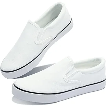 Obtaom Women's White Sneakers Black Slip On Shoes for Women Low Top Canvas Shoes Loafers(White US07)