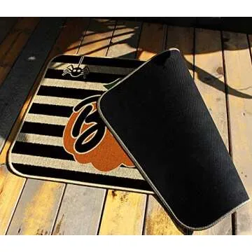 Show moreWelcome the Halloween season in style with the OCCdesign Halloween Doormat Decor -Boo!- Funny Halloween Rug. This whimsical doormat captures the spirit of Halloween with its playful design, inviting guests to share a laugh even before they step inside. Made from durable materials, this mat is built to withstand the hustle and bustle of Halloween festivities while adding a delightful touch to your front porch or entryway. Its thin profile ensures it fits perfectly under most doors without rolling up, making it a practical choice as well as a stylish one.