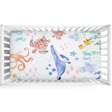 Ocean Animals Corals Sea Weeds Baby Crib Sheet 52''x28'' Colorful Nautical Life Fitted Crib Mattress Covers for Boy Girl Nursery Toddler Baby Bed Sheet Fits Standard Crib Toddler Mattress