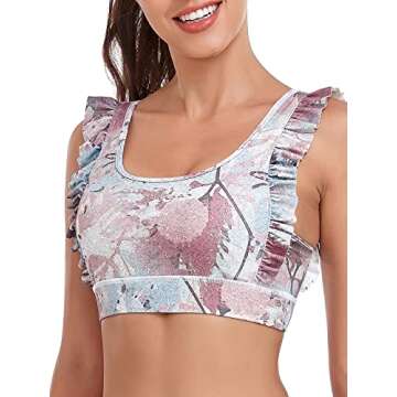 Ocean Blues Women's Compression Racerback Sports Bra Ruffle Fitness Workout Running Yoga Top