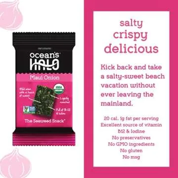 Ocean's Halo Organic Maui Onion Seaweed Snacks, 1 Case (12 Units)