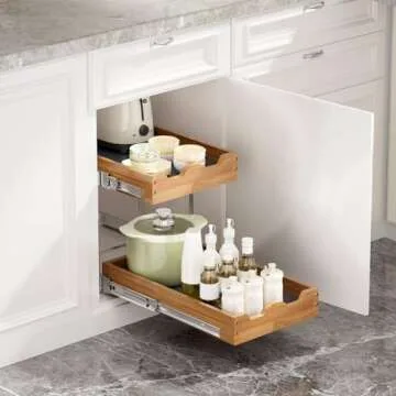 OCG Pull Out Drawers For Cabinets 14"W x 21"D, 2 Tier Heavy-Duty Slide out Wood Drawer Shelf, Pull Out Drawer for Cabinets, Base Cabinet Organization for Kitchen, Pantry, Bathroom