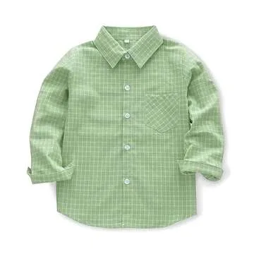 OCHENTA Toddler Boys Plaid Flannel Button Down Shirt Long Sleeve Casual Dress Tops Green 110CM - 3T