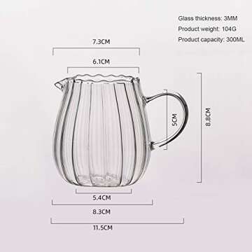Introducing the Ochine Elegant Wave Shaped Clear Crystal Glass Creamer Pitcher, a truly exquisite addition to your kitchen collection. Crafted from high-quality borosilicate glass, this stunning creamer pitcher not only catches the eye with its elegant wave design but also provides exceptional durability and functionality. Resistant to thermal shock, it safely handles temperature changes from -20 degrees Celsius to 180 degrees Celsius, making it versatile enough for hot beverages...