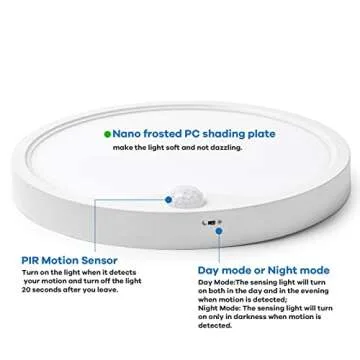 Show more If you're searching for an innovative lighting solution that combines style, functionality, and advanced technology, look no further! This remarkable motion-sensor ceiling light seamlessly integrates into any area of your home, providing exceptional brightness and convenience. Whether it’s in your kitchen pantry, laundry room, closet, or hallway, this sleek fixture ensures you never fumble in the dark again. Crafted by a trusted brand known for their quality, this light easily outshines traditional incandescent bulbs with its intense 6500 K white light, offering both clarity and brightness.