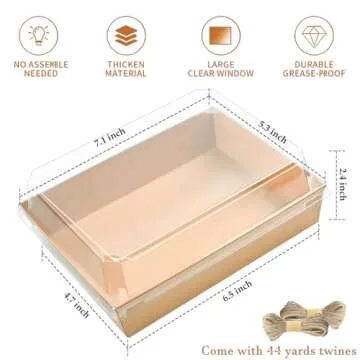 Ocmoiy 7x5 Inch Charcuterie Boxes with Clear Lids, 25 Pack Paper Bakery Boxes with Window, Disposable Take Out Food Containers for Sandwiches, Strawberries, Cookies, Cupcakes (Brown)