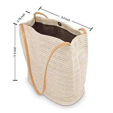 OCT17 Women Straw Beach Bag tote Shoulder Bag Summer Handbag - White