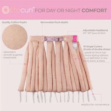 Show moreUnlock the secret to luscious, heat-free curls with the Octocurl Heatless Curls Headband! Perfectly tailored for those with medium-length hair (14-19 inches), this innovative curling device is crafted from soft, breathable cotton poplin to ensure maximum comfort while you sleep. Say goodbye to damaging heat tools and hello to beautiful, bouncy waves that last for days! Experience the joy of waking up to gorgeous curls without any effort and without any damage to your precious locks.