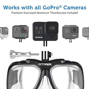 Show moreIntroducing the OCTOMASK - Scuba Mask with Mount for All GoPro Hero Cameras, the ultimate companion for your underwater adventures. This innovative mask is expertly designed for scuba diving, snorkeling, and freediving enthusiasts, combining style, comfort, and functionality. The Octomask features a high-quality tempered glass lens that provides a crystal-clear view during your underwater explorations. Its ultra-soft silicone skirt molds perfectly to your face, ensuring a snug fit that prevents leaks while keeping you at ease even in extended use.