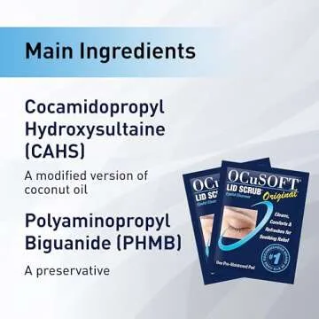 Show more Discover the soothing relief and gentle care of the OCuSOFT Lid Scrub Original Eyelid Cleanser. This exceptional eyelid cleanser is #1 Doctor Recommended, making it the trusted choice for those seeking to alleviate discomfort caused by tired or irritated eyelids. Featuring pre-moistened pads, this eyelid scrub offers an easy and convenient solution, ideal for on-the-go use. Each of the 30 individually packaged wipes ensures that cleansing is effortless and hygienic, perfect for anyone looking to maintain eye hygiene effortlessly.