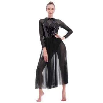 Show more Introducing the ODASDO Lyrical Dance Costumes for Women, the perfect blend of elegance and modernity designed specifically for adults passionate about dance. This exquisite dancewear features a stunning combination of glittering sequins and delicate mesh tulle, creating an eye-catching effect that is sure to turn heads on stage or at any formal occasion. The long sleeve design not only provides coverage but also enhances the graceful movements of the dancer, while the mock neck collar adds a touch of sophistication. With a full circle maxi long dress silhouette, this outfit enables fluid motion, making it an ideal choice for lyrical, ballet, and contemporary dance performances.<\/p>