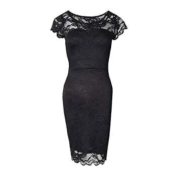ODCOCD Women's Lace Dress/Cocktail Party Dress/Wedding Guest Bridesmaid Dresses/Homecoming Dress (US, Alpha, Small, Regular, Regular, Black)