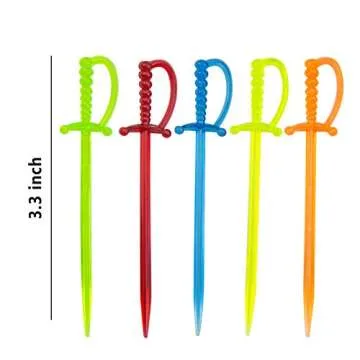 ODDIER 100PCS Multicolor Plastic Sword Toothpicks for Appetizers and Cocktails