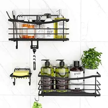 ODesign Shower Caddy 3 Pack-Shower Organizer Shelves Rack Rustproof SUS304 Stainless Steel for Bathroom Storage&Kitchen-No Drilling Adhesive Shower Caddy Shelf with 4 Hooks Suction Cup-Black
