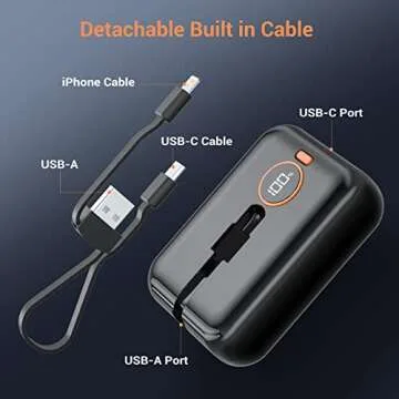 One of the standout features of this power bank is its detachable built-in cable, making it incredibly versatile. Simply plug the inner cable directly into your iPhone or Android device to start charging. If you prefer, you can remove the cable to use it independently for charging the power bank itself. No more fumbling with extra cords!