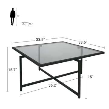 ODIKA Small Space Square Glass Coffee Table - Square Coffee Table for Living Room, 36" Modern Coffee Table, Living Room Tables with Glass Top, Simple Center Table