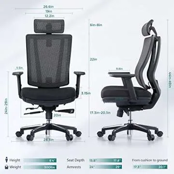 OdinLake Ergonomic Mesh - Seat Depth Adjustable Home Office Desk Chairs High Back with Lumbar Support - Computer Swivel Task Chair with Footrest, Headrest, PU Wheels (Model: Ergo Pro 633)