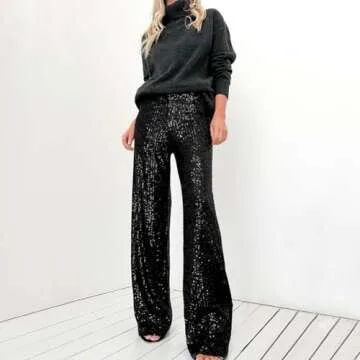 Show moreStep into the spotlight with the ODIZLI Black Women Sequin Wide Leg Pants – the perfect blend of glamour and comfort for any special occasion. These stunning pants feature a high-waisted design and an elastic waistband that ensures a snug yet comfortable fit, allowing you to dance the night away without any restrictions. Adorned with all-over shimmering sequins, these pants reflect light beautifully, making you the center of attention wherever you go. Crafted from soft, breathable fabric, they guarantee all-day comfort while maintaining their dazzling appearance, giving you a glamorous look that's both flattering and stylish.