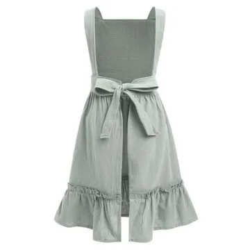 ODIZLI Womens Baking Apron Cute Dress with Frill Cross Back Cotton Linen Sage Green One Size