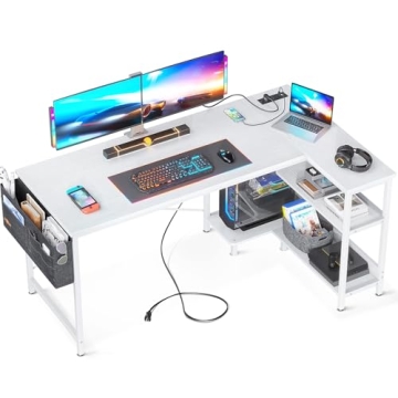 Show more Introducing the sleek and versatile ODK 55 Inch Small L Shaped Gaming White Computer Desk, designed to rejuvenate your workspace while optimizing small areas in your home. Crafted with modern minimalism in mind, this desk seamlessly combines functionality and aesthetic appeal, perfect for gaming enthusiasts, students, or remote workers alike. The desk not only features 3 power outlets and 1 USB charging port along with 1 Type C port to effortlessly charge all your devices, including smartphones and gaming gear, but it also offers a configurable design that allows you to customize the shelves based on your preference. With ample storage and a beautiful white finish, this desk is truly a piece of functional art.