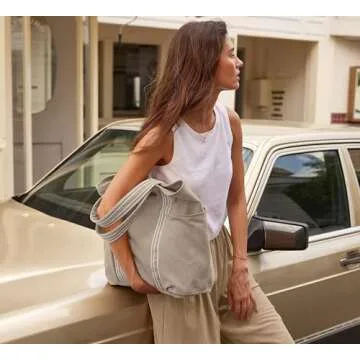ODODOS 29L Oversized Canvas Tote Bag Large Capacity Open Top Shoulder Bags for Gym Workout Shopping Beach Travel, Gray Brown