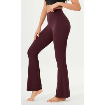 ODODOS Cloud Feeling Flared Yoga Pants with Back Pocket for Women, High Waist Casual Bootleg Lounge Pants, 32" Inseam, Burgundy, Small