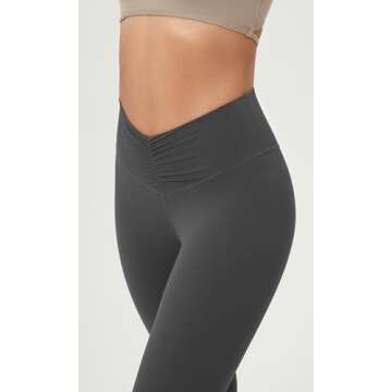 ODODOS Cloud Feeling Ruched Yoga Leggings for Women 7/8 Length High Waist Crossover Yoga Pants, Charcoal, Medium