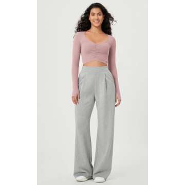 ODODOS Long Sleeve Ruched Front Crop Tops with Thumb Hole for Women Seamless Ribbed Cropped Tee, Pink, Medium/Large