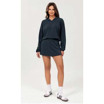 ODODOS Modal Soft Long Sleeve Cropped Hoodie for Women Oversized Pullover Sweatshirts with Pocket, Navy, Medium