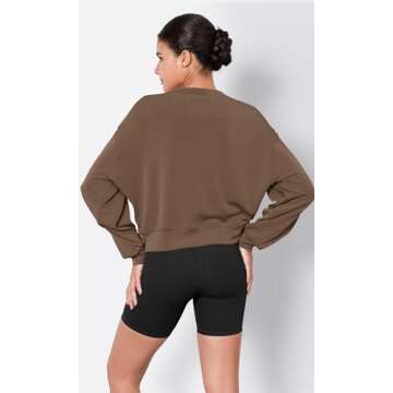 ODODOS Modal Soft Long Sleeve Cropped Sweatshirts for Women Oversized Crew Neck Pullover Crop Top, Nutria, Medium