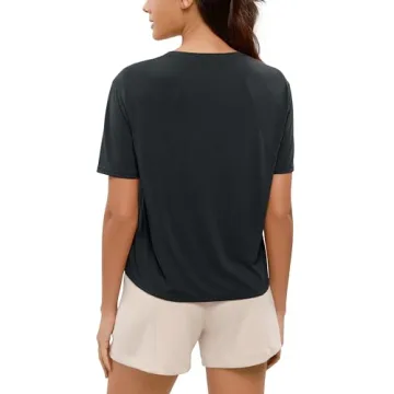 The unique back arc design sets this shirt apart from the rest. With a flowy fit that flatters all body types, the double arc design on the back enhances your silhouette and visually modifies the back line, providing a stylish yet relaxed look. You can easily pair this shirt with a variety of pants and shorts, allowing for countless fashion possibilities from day to night.