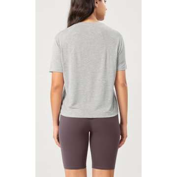 ODODOS Modal Soft Short Sleeve Shirts for Women Crew Neck Yoga Tee Casual Workout Tops, Heather Grey, Medium