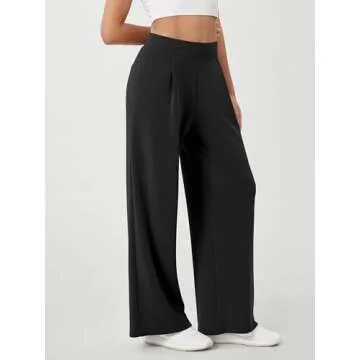 ODODOS Modal Soft Wide Leg Pants for Women High Waist Casual Pants with Pockets, 29" Inseam, Black, Large