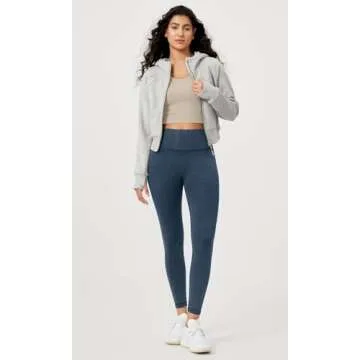 ODODOS Vintage 7/8 Length Seamless Leggings for Women 25" Ribbed High Waist Casual Workout Gym Yoga Pants,Stone Wash Navy, X-Large