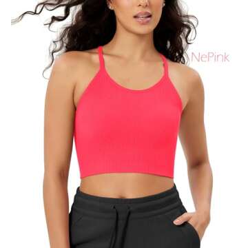 Show more Introducing the ultimate blend of style and comfort, the ODODOS Women's Crop Seamless Rib-Knit Camisole Tank Tops. These tops feature a design that minimizes seams, ensuring a luxurious fit that allows for unparalleled mobility. Crafted from ultra-soft, lightweight rib-knit fabric, they offer a barely-there feel, hugging your body in all the right places for a streamlined silhouette. The tag-free design eliminates any itchy distractions, while the non-padding feature allows for versatile wear, whether with or without a bra.
