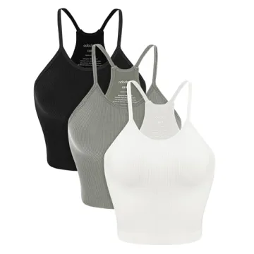 Show more Introducing the ODODOS Women's Crop 3-Pack Washed Seamless Rib-Knit Camisole Tank Tops, the ultimate blend of comfort and style that every wardrobe needs. These tops stand out due to their seamless finish, providing greater mobility and comfort that lasts from morning to night. Made from a soft, lightweight rib-knit fabric, they stretch in all four directions, ensuring a snug yet flattering fit without feeling restrictive. Perfectly designed for versatility, they seamlessly transition from lounging at home, hitting the gym, or dressing up for a casual outing.